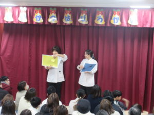 役の特徴をとらえ、演じ方を皆で考え、話しながらクラス全員で作り上げた劇。