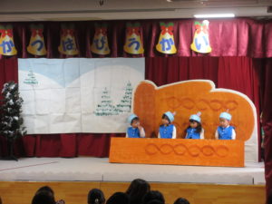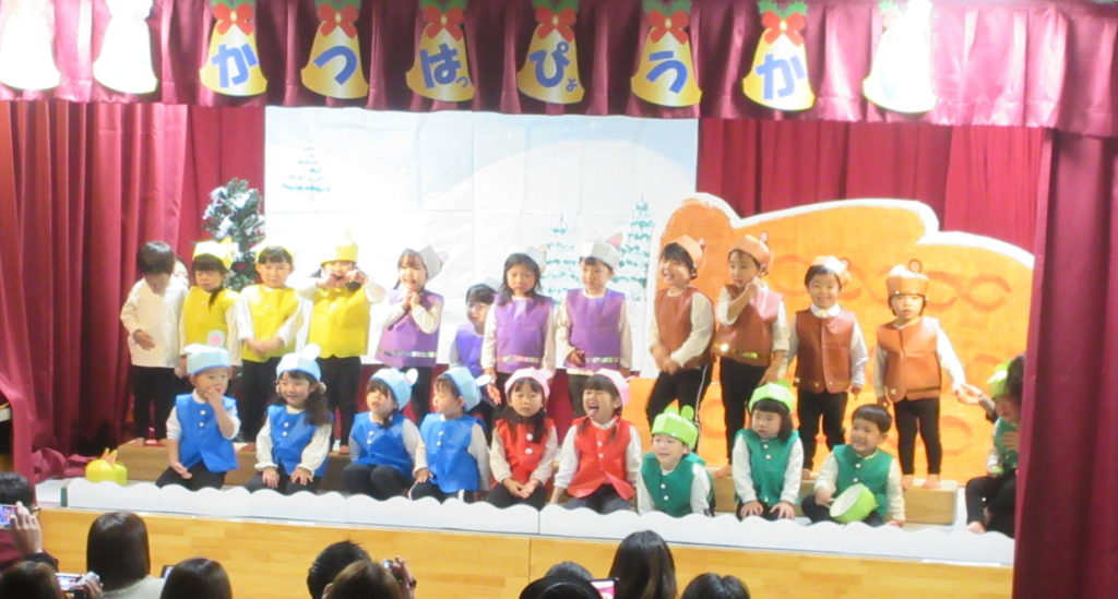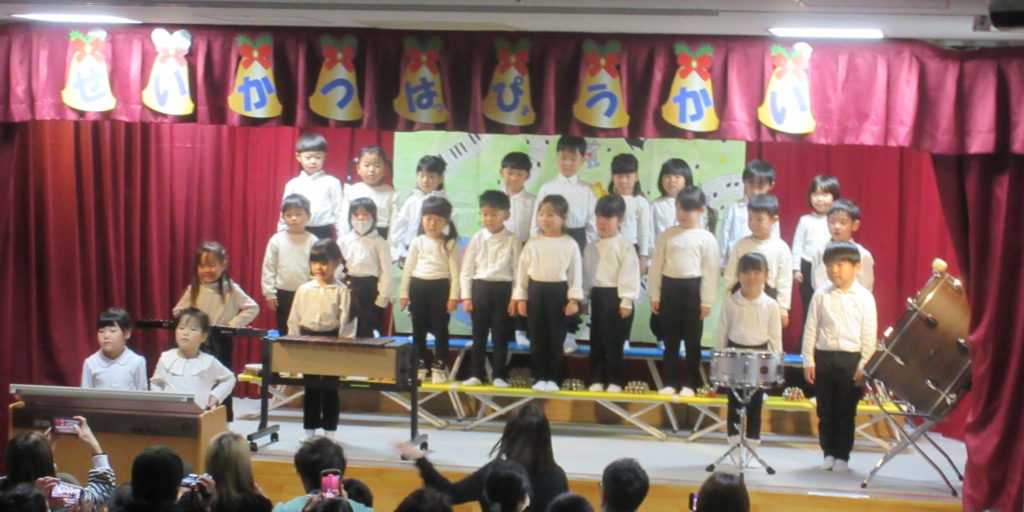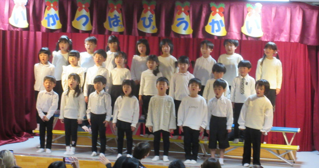 続いては、ばら組の歌「きみのこえ」「ペンギンマークのひゃっかてん」を歌い、合奏は「ウィンターワンダーランド」をしました。